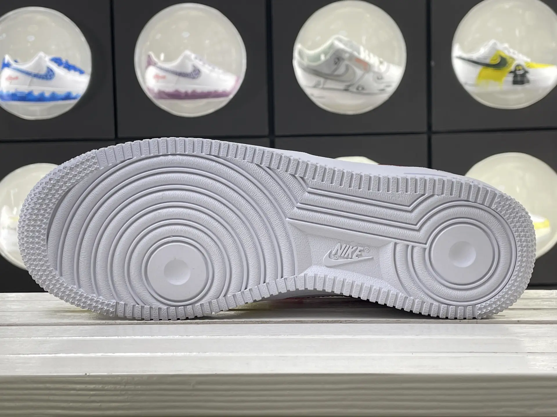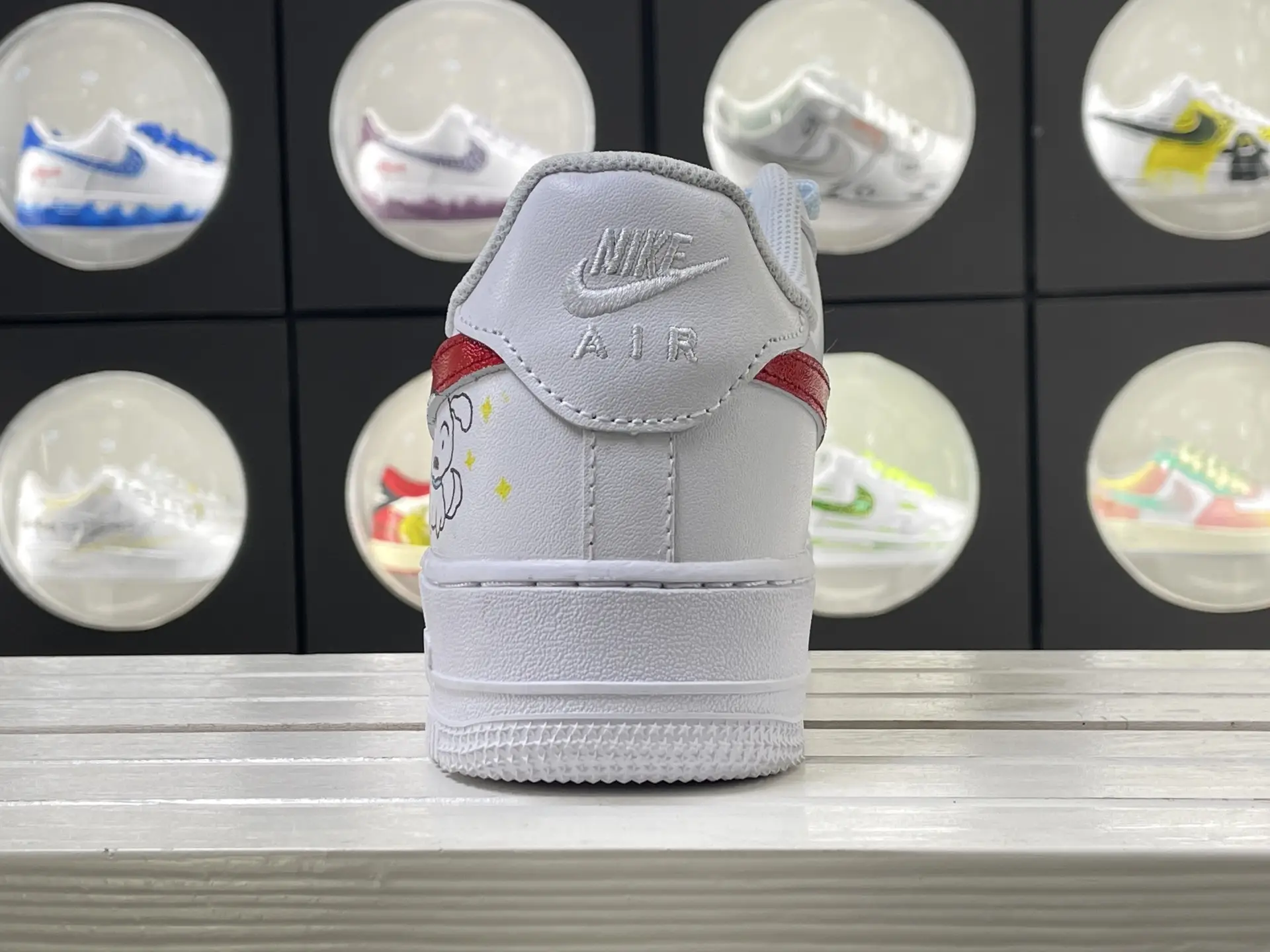The classic Air Force One shoe design serves as the base, making it versatile and comfortable. I boldly used bright yellow on the toe of the shoe, which directly boosted its vitality. The iconic red hook is eye-catching and eye-catching, making it difficult to walk on the street without being noticed. The most unique feature is the hand drawn cartoon pattern on the shoe upper, where each little character seems to have run out of a fairy tale, full of childlike fun and full of personality.